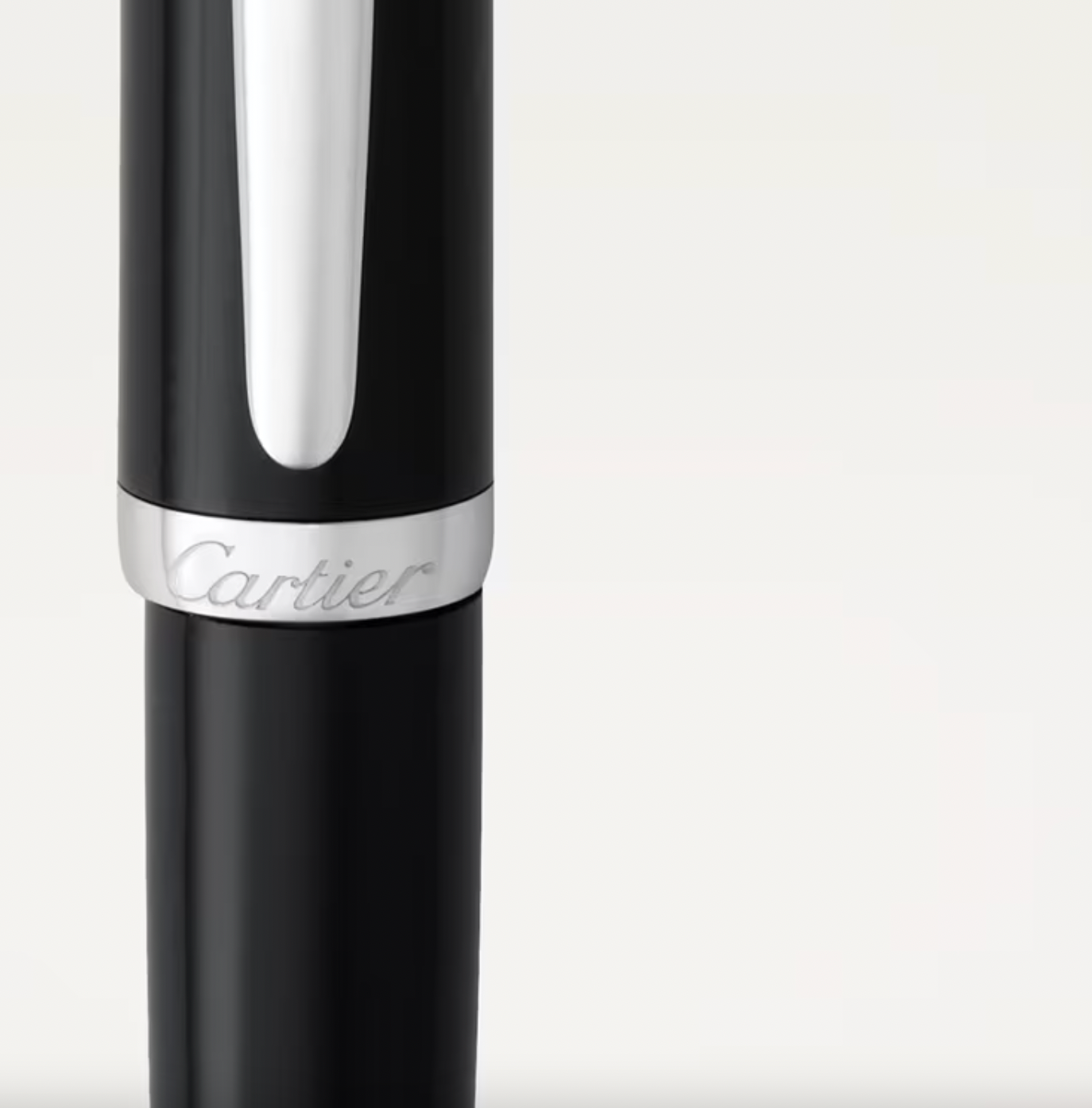 • قلم حبر جاف (بولبوينت) من مجموعة "آر دو كارتييه" مصنوع من مادة مركَّبة سوداء، وتفاصيل مطلية بالبلاديوم، وكابوشون من الراتين الأزرق. المقاييس: الارتفاع 140 مم. يأتي مع عبوة حبر أسود متوسّطة الحجم لقلم حبر جاف (بولبوينت).